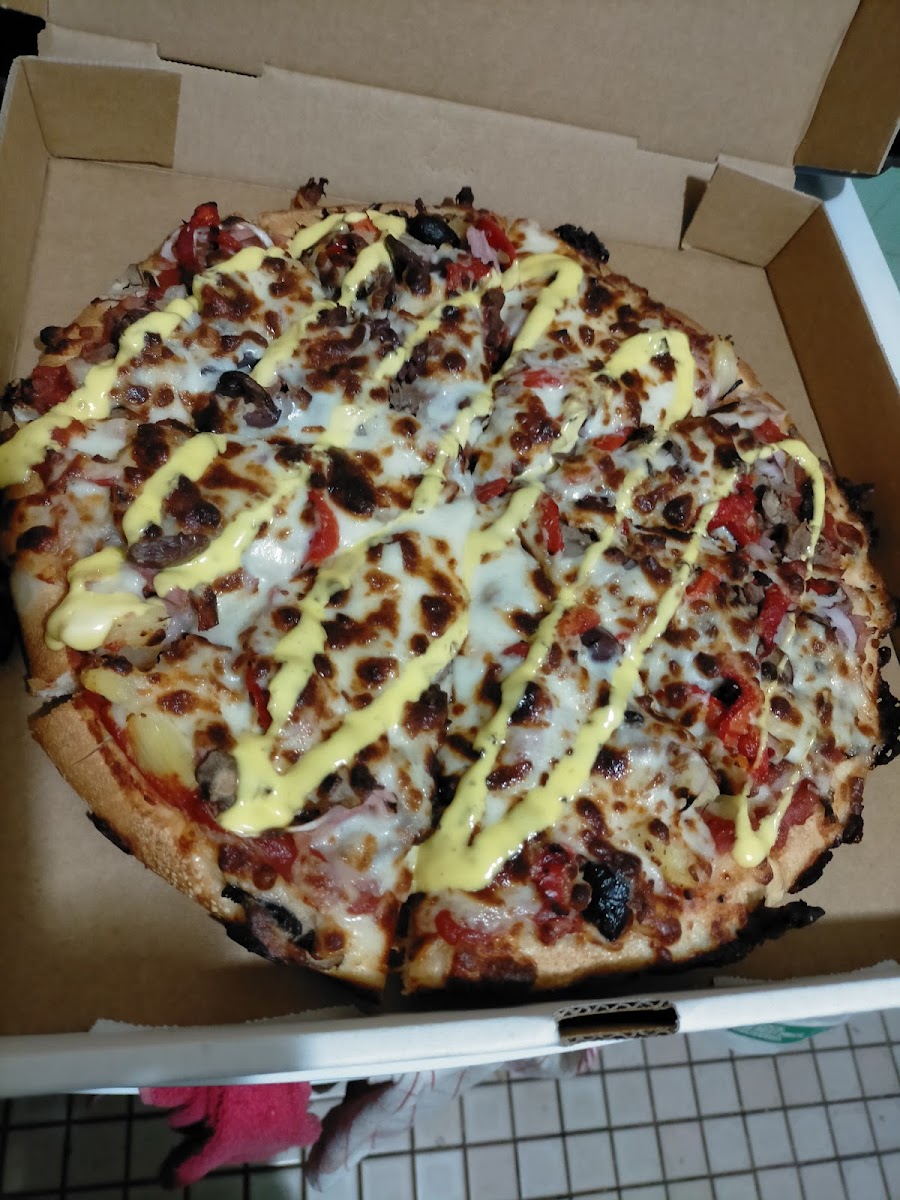 Friendly staff, looked clean, was easy to order online and via phone call. The pizzas, garlic bread and wedges were tasty and excellent value. We ordered a veggie, a pepperoni/cheese and a Hawaiian. Kids were stoked. Many thanks!