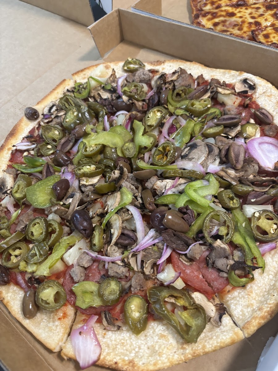 Delicious pizza. Well loaded with toppings. Great service. This will be our go to pizza place from now on.